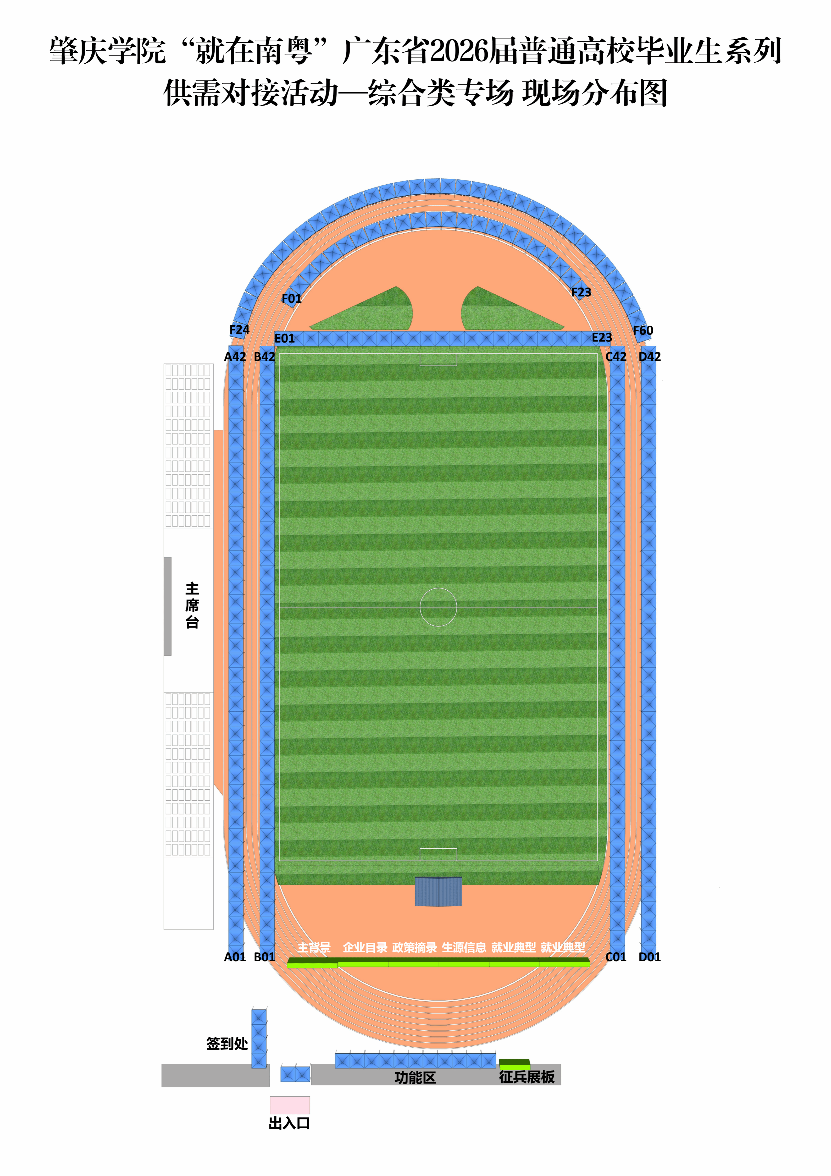 “就在南粤”广东省2026届普通高校毕业生系列供需对接活动—综合类专场 (肇庆学院)参会企业展位号及展位分布图