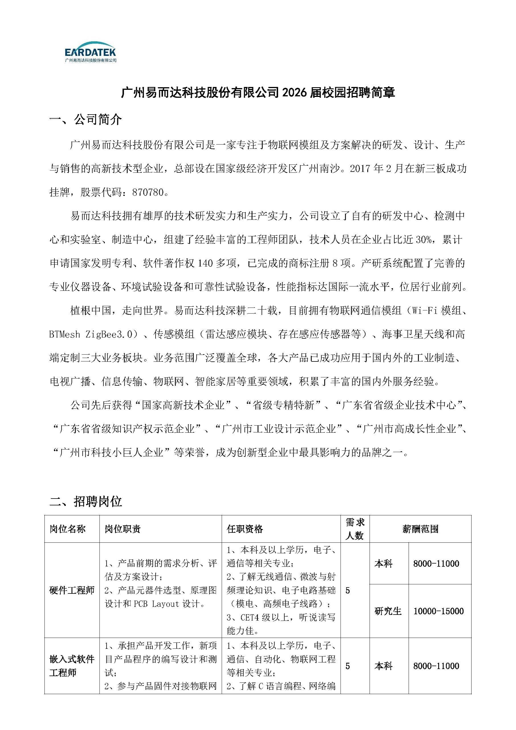 【10月17日下午】广州易而达科技股份有限公司招聘宣讲会