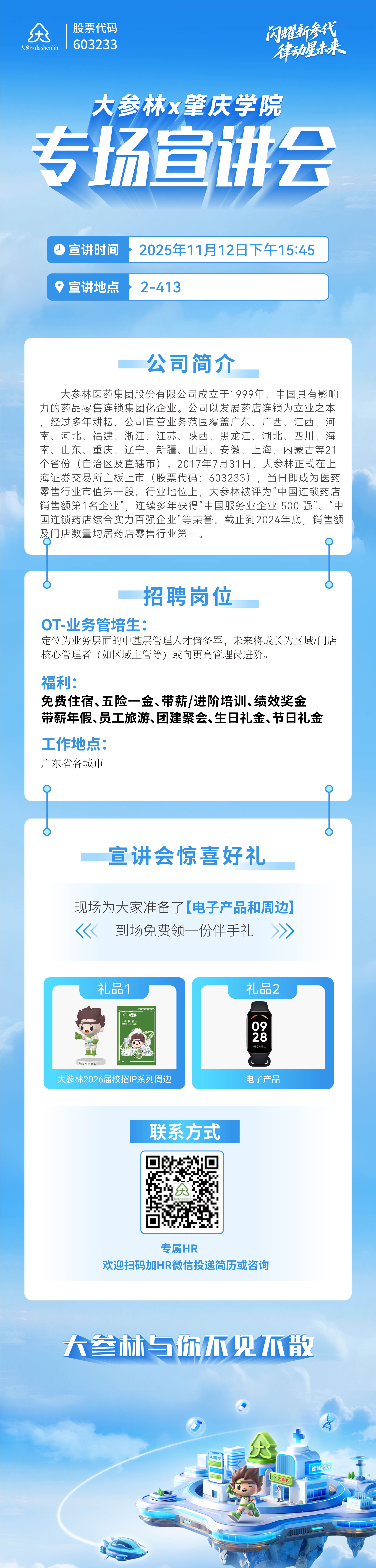 专属HR | 大参林招聘公众号 微信搜索关注大参林招聘-公众号,点击进入校园招聘模块 |